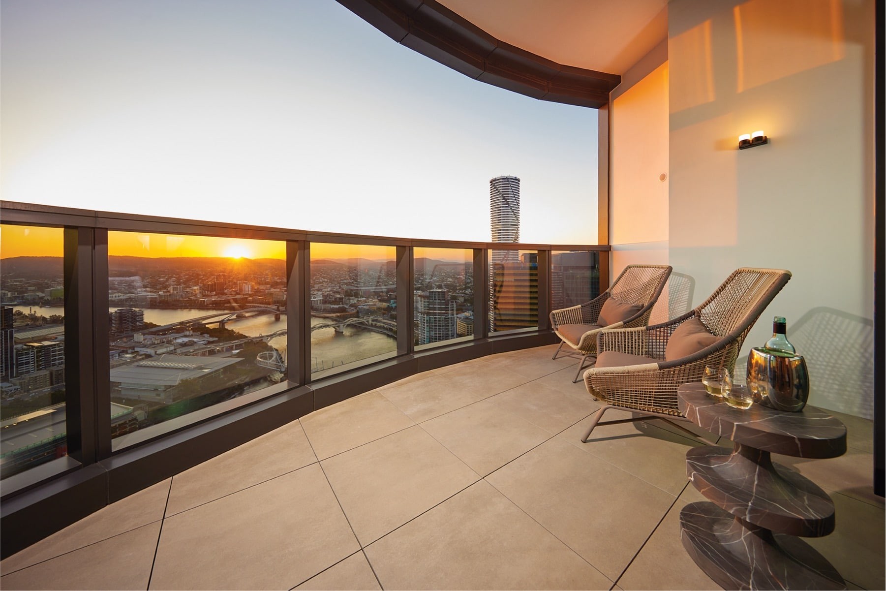 This world renowned five-star hotel rises 34-storeys above the Brisbane River, incorporating an indulgent rooftop lounge, pool, cocktail bar and 312 hotel rooms including presidential and executive suites. Designed by DBI Architects, the hotel flaunts bold colours, metallic finishes, local artistry and eclectic design concepts, cleverly used to create an opulent environment that reflects Brisbane’s vibrant and playful lifestyle. Affording exquisite views over the Brisbane River, Southbank and beyond, W Brisbane offers an indulgent urban oasis, affording guests a premium level of service, facilities and luxury.